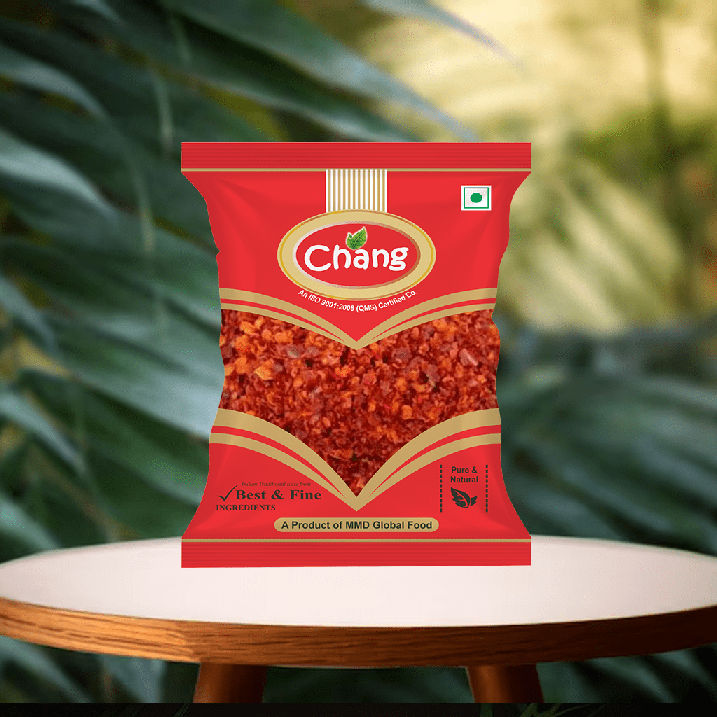 Coarsely crushed red chilies with moderate heat and rustic texture.